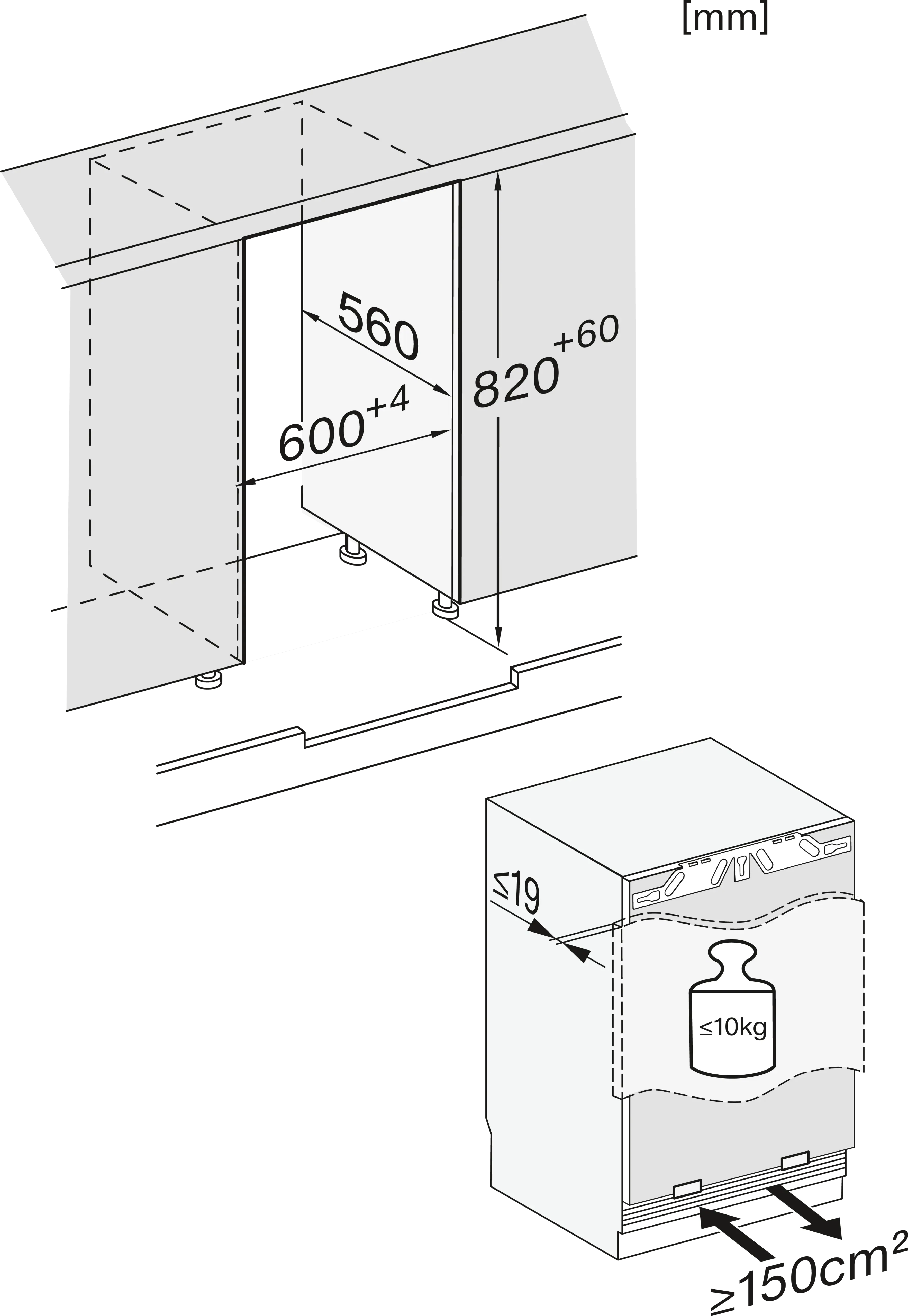 Установка встраиваемого холодильника