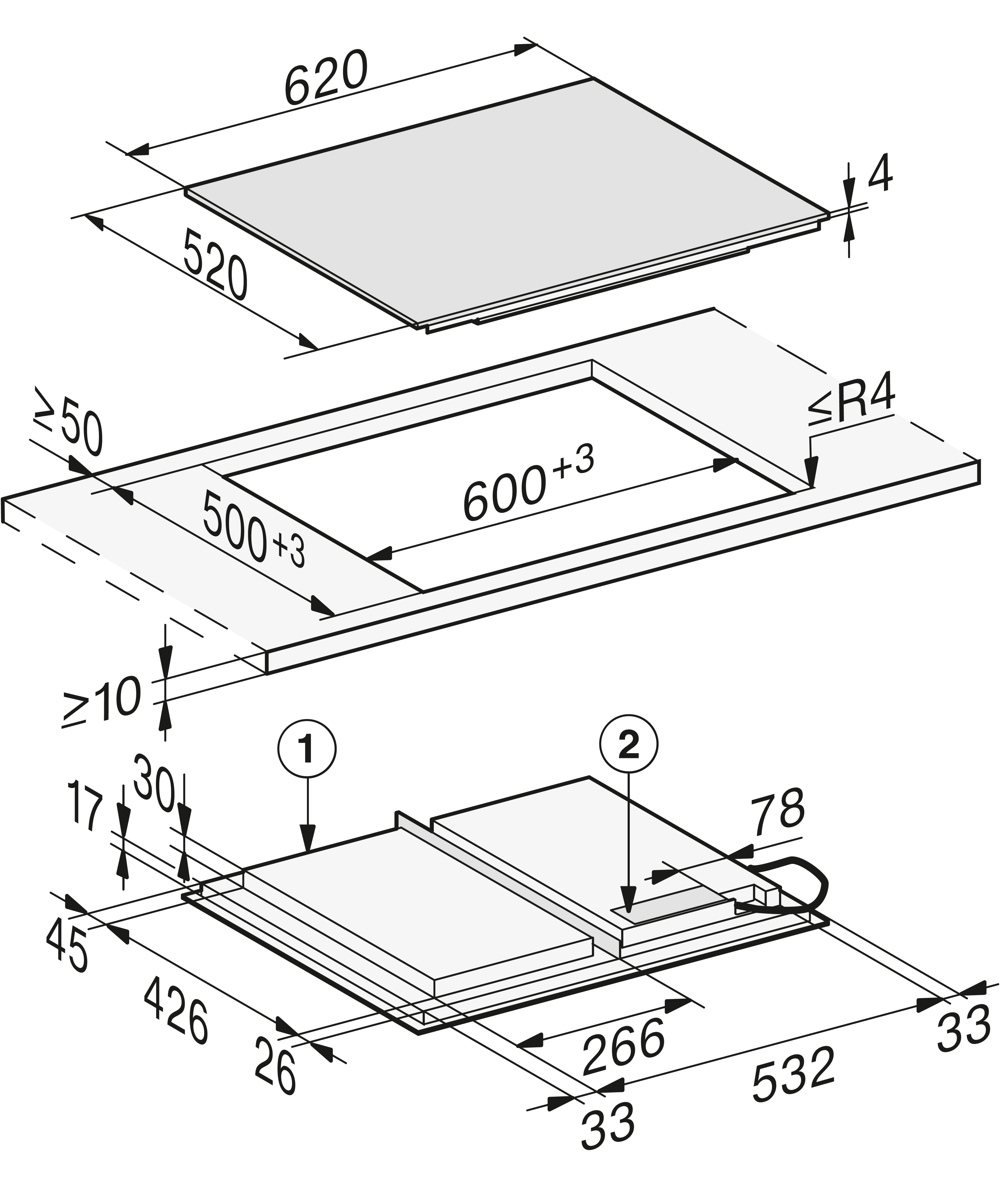 Внешние размеры выреза в мм (ширина) для встраивания заподлицо